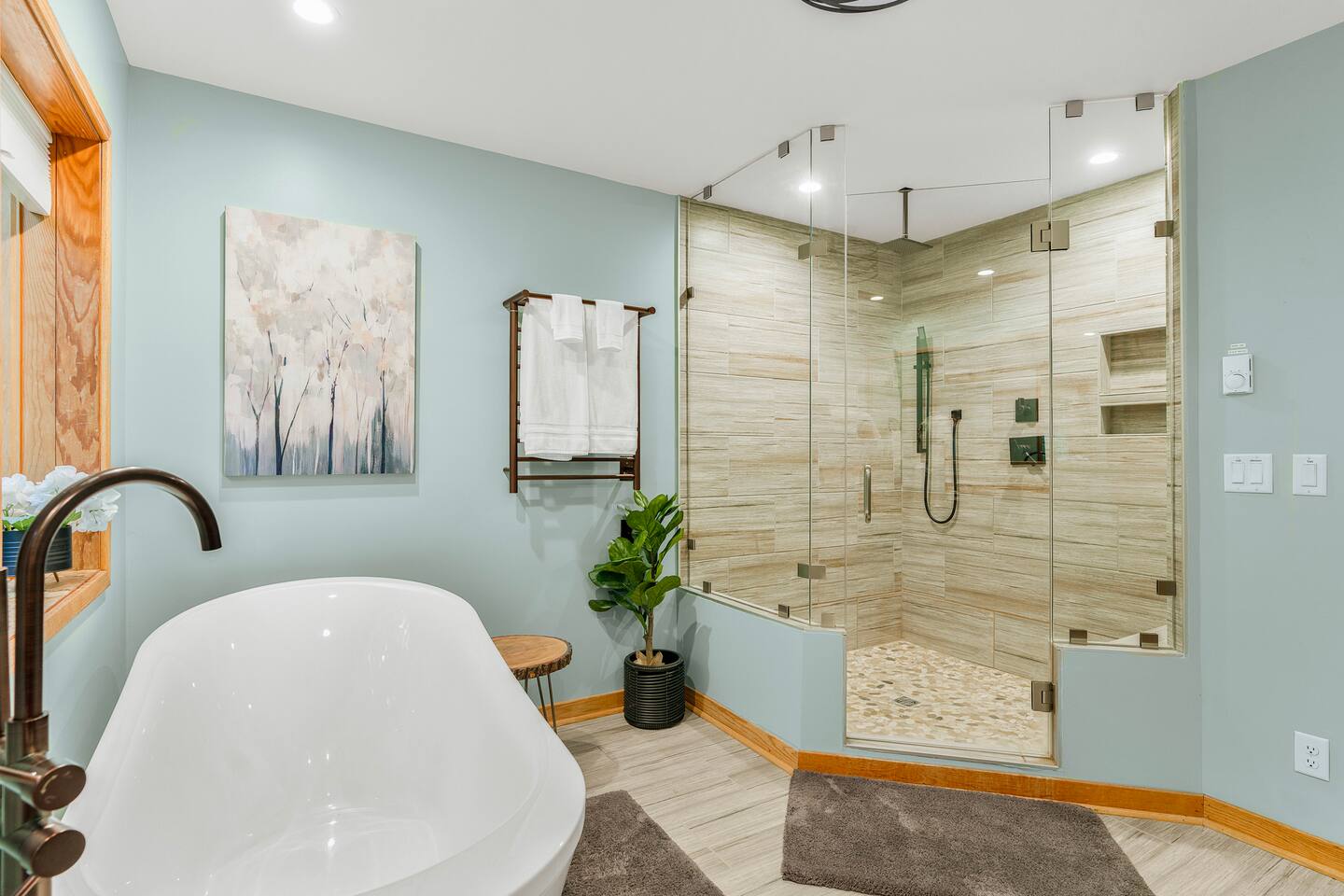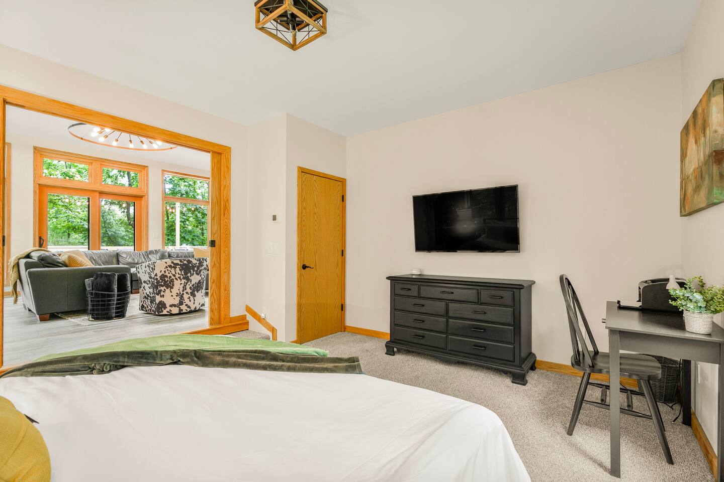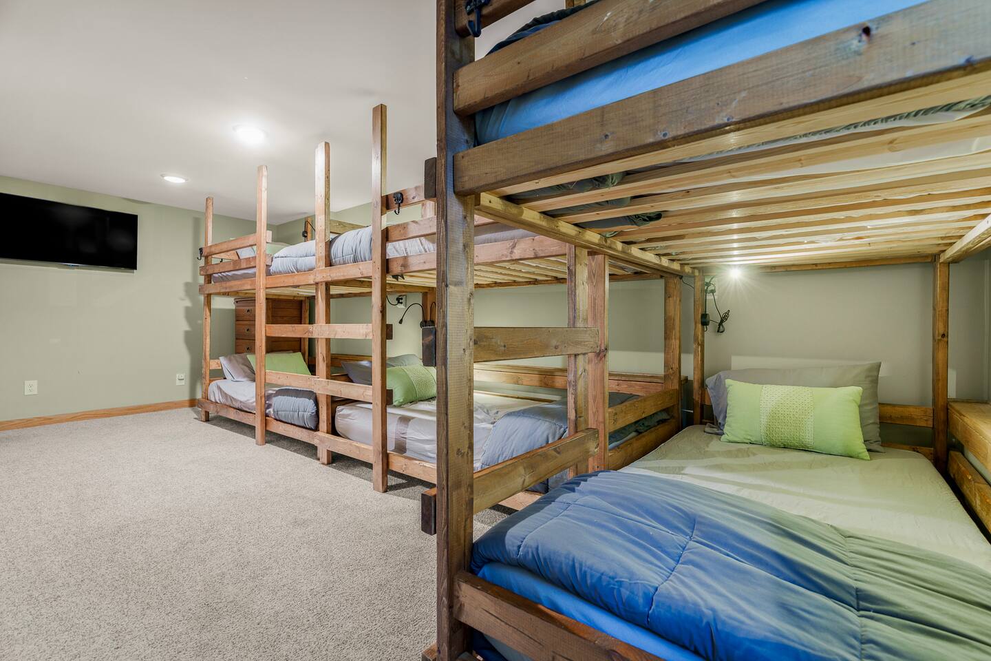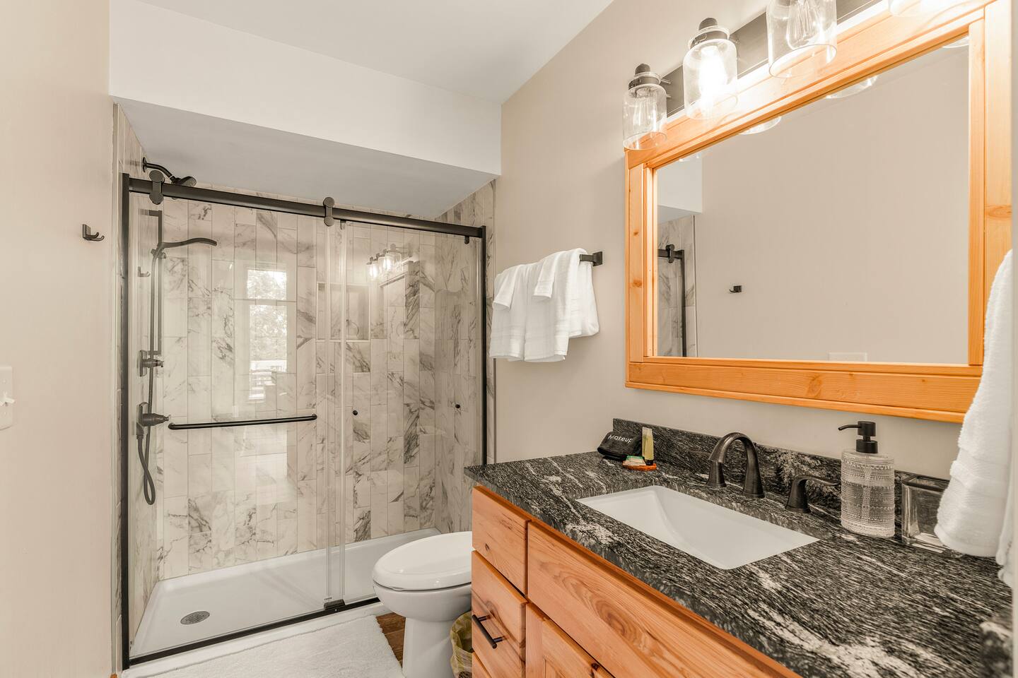 We are located in the heart of beautiful Wintergreen Virginia, which has tons to do for all ages, year-round. Mountain Treehouse is just a few minutes’ drive to the slopes and all the dining and entertainment at Wintergreen. Some of the best hiking trails in the state are off the Blue Ridge Parkway (15 minutes from the home), plus there are other great trails just down the street. Also nearby are two sandy-beach-entrance lakes plus a community pool for swimming, and over dozen wineries, breweries, and distilleries- all within a 30 minute drive. Additionally, after a 5 min hike to the base of our property, there is a hiking trail along a creek. In the summer time, supervised kids can play in the creek while adults breathe in the peaceful nature. After heavy rains, you can even hear the rushing waters from the mountain stream at the base of the property. Along that trail is a moderate hike out to Shamokin Falls, Wintergreen's own waterfall! The house has 4 bedrooms plus loft bedroom, and 3 bathrooms, with the layout as follows: Main level: - Main level deck features outdoor dining for 10, gas grill, rocking chairs, and bar seating - Living room with wood burning fireplace (firewood provided), 65" smart TV, and arcade machine - Newly renovated, oversized, and fully stocked kitchen with custom teak root stools surrounding island - Dining area features custom live edge table with seating for 6, plus room for 8 more at the kitchen island (14 seats total) - BR1: King bedroom with dedicated workspace - Full bath with tile shower Lower level: - Lower deck features new hot tub, barrel sauna, fire table (propane provided), and additional outdoor seating - BR2: Master bedroom with king bed and deck access. - Ensuite bathroom of BR2, fully renovated with double vanity, tiled shower, and soaker tub - BR3: King bedroom - BR4: Bunk room with 3 sets of twin-over-twin beds and built-in reading lights - "Jack and Jill" full bath: Shared bathroom between BR3 and BR4 with tile shower - Laundry room with full size washer and dryer Loft: - The Loft area is set up as Bedroom 5, but note that it is open to the living room area so not completely private. This room features a queen bed, smart TV, foosball table, and various games