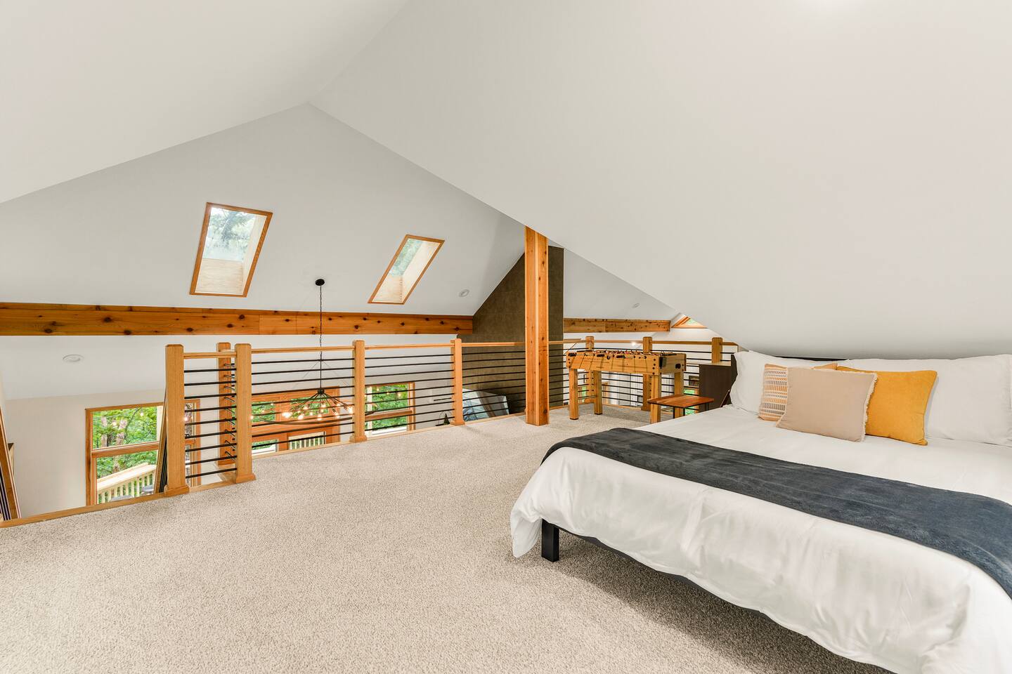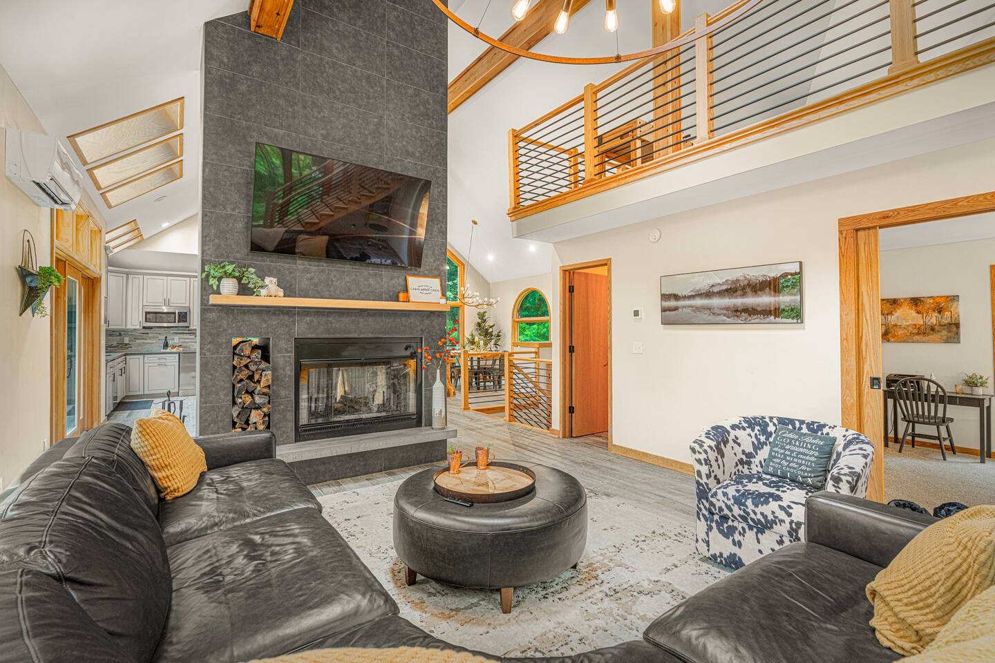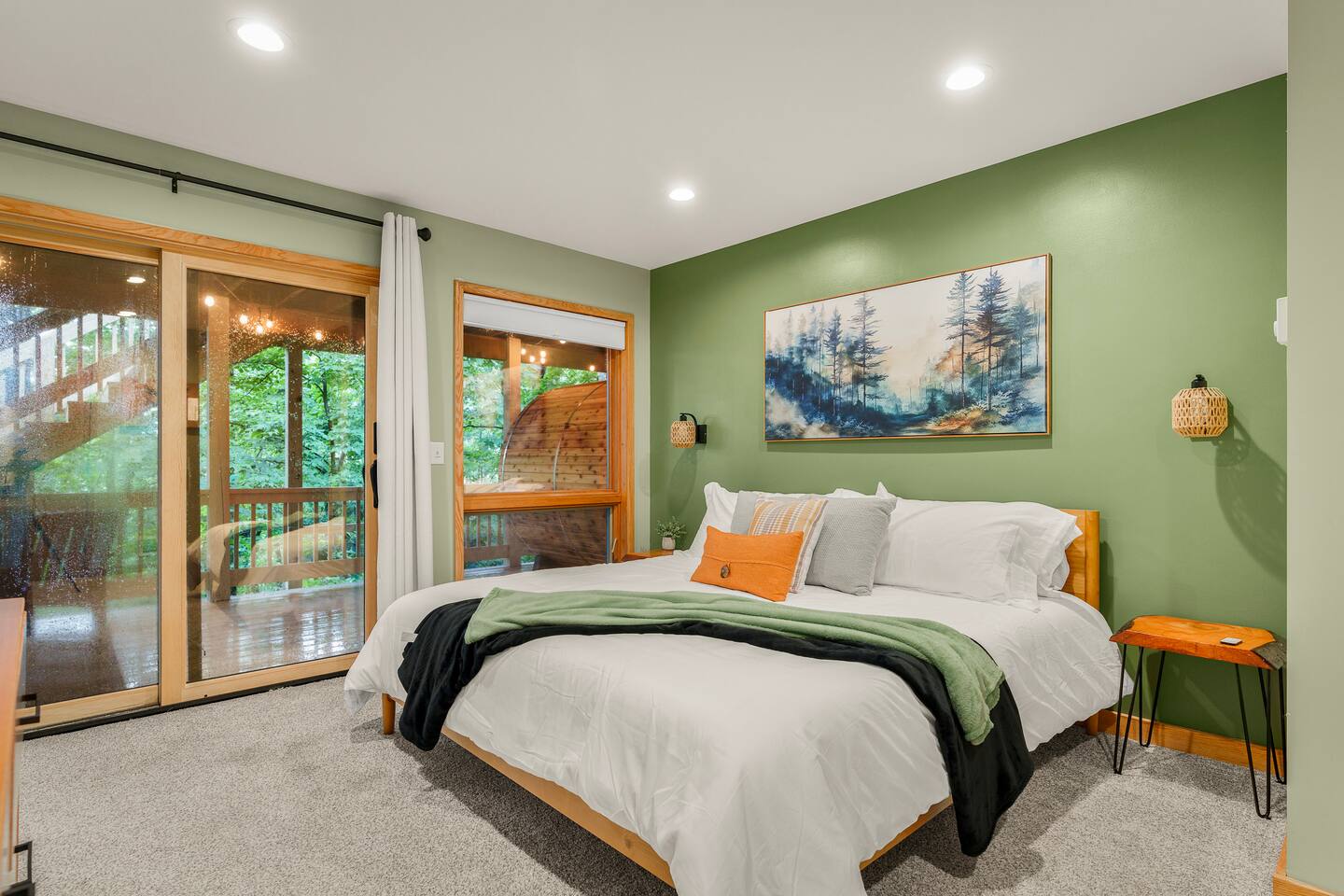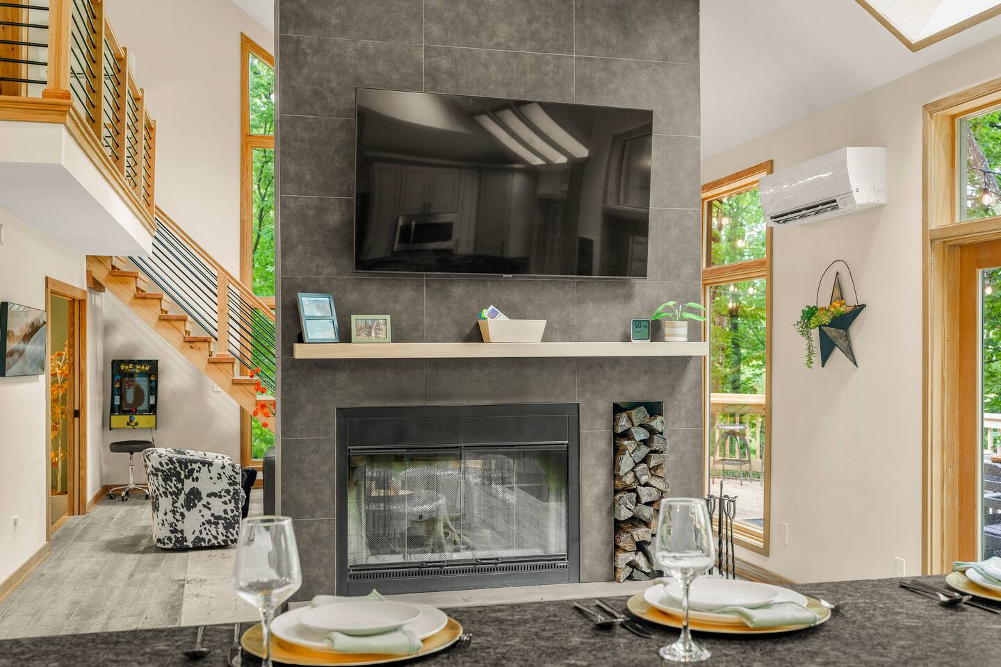 Welcome to the Mountain Treehouse! We recently renovated the home with a brand new hot tub, barrel sauna, fire table outside, two-sided wood burning fireplace inside, and EV charger. The home is nestled in the tree tops, with oversized windows allowing natural light to fill the space, and has fantastic privacy. Vaulted two story ceilings make the home feel wide open and spacious. Plus, pet friendly! Managed by Chris at New School Hosting; click my profile for more reviews.