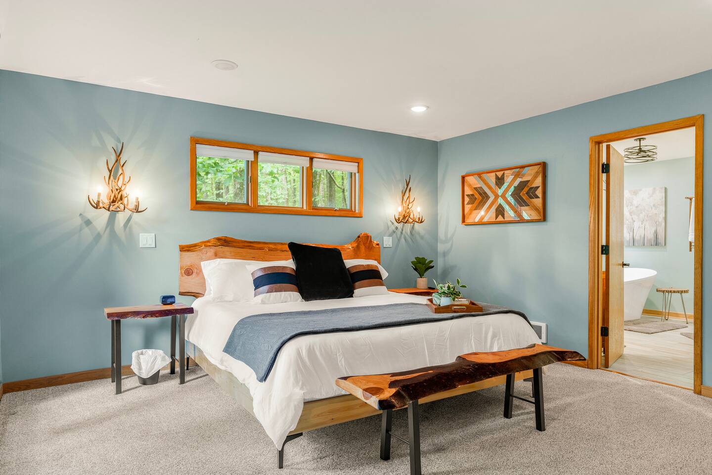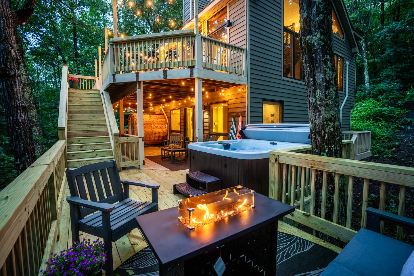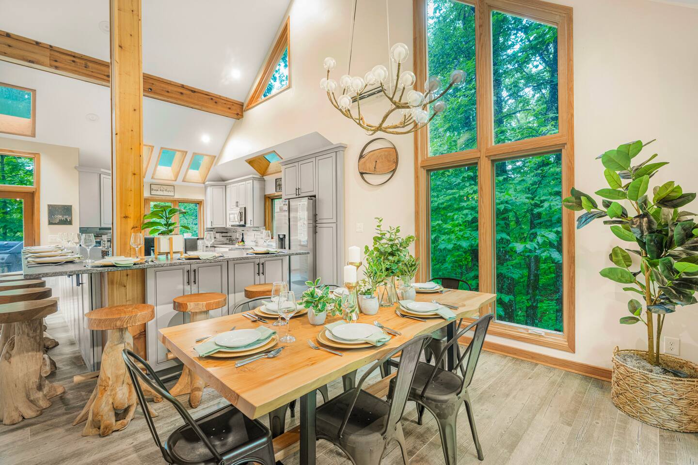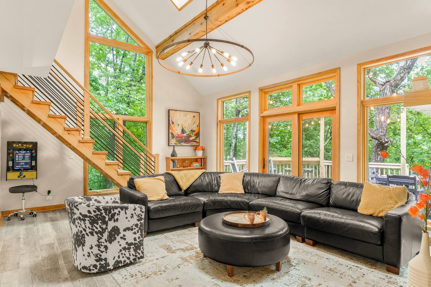 Welcome to the Mountain Treehouse! We recently renovated the home with a brand new hot tub, barrel sauna, fire table outside, two-sided wood burning fireplace inside, and EV charger. The home is nestled in the tree tops, with oversized windows allowing natural light to fill the space, and has fantastic privacy. Vaulted two story ceilings make the home feel wide open and spacious. Plus, pet friendly! Managed by Chris at New School Hosting; click my profile for more reviews.